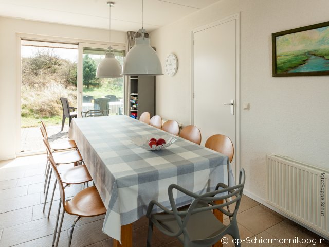 | Er zijn o.a. 2 kinderstoelen en 2 kinderbedjes (ledikant en campingbedje) aanwezig. De ramen in alle kamers boven zijn voorzien van horren. In de woning bevinden zich 10 eenpersoonsbedden en een extra opklapbed. |